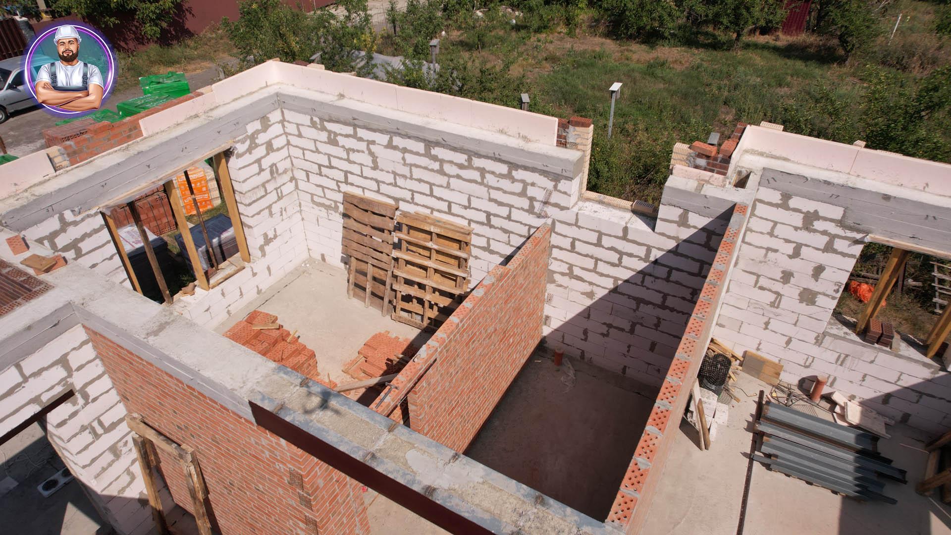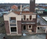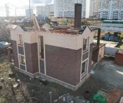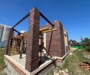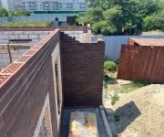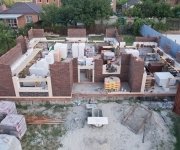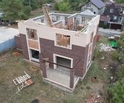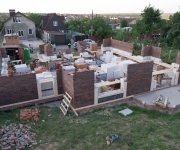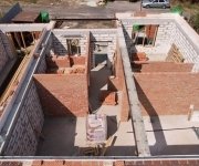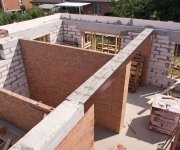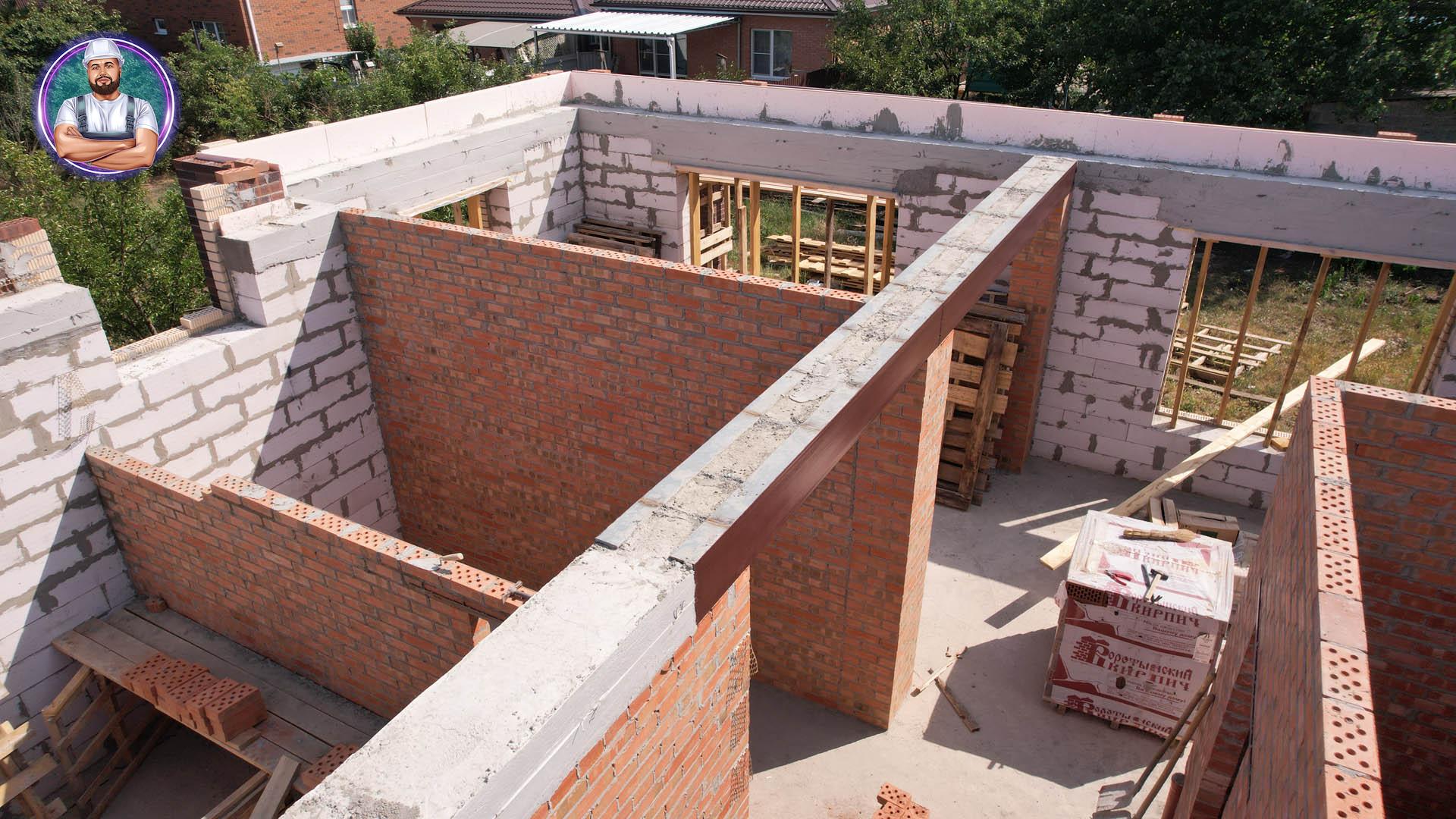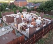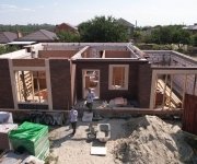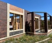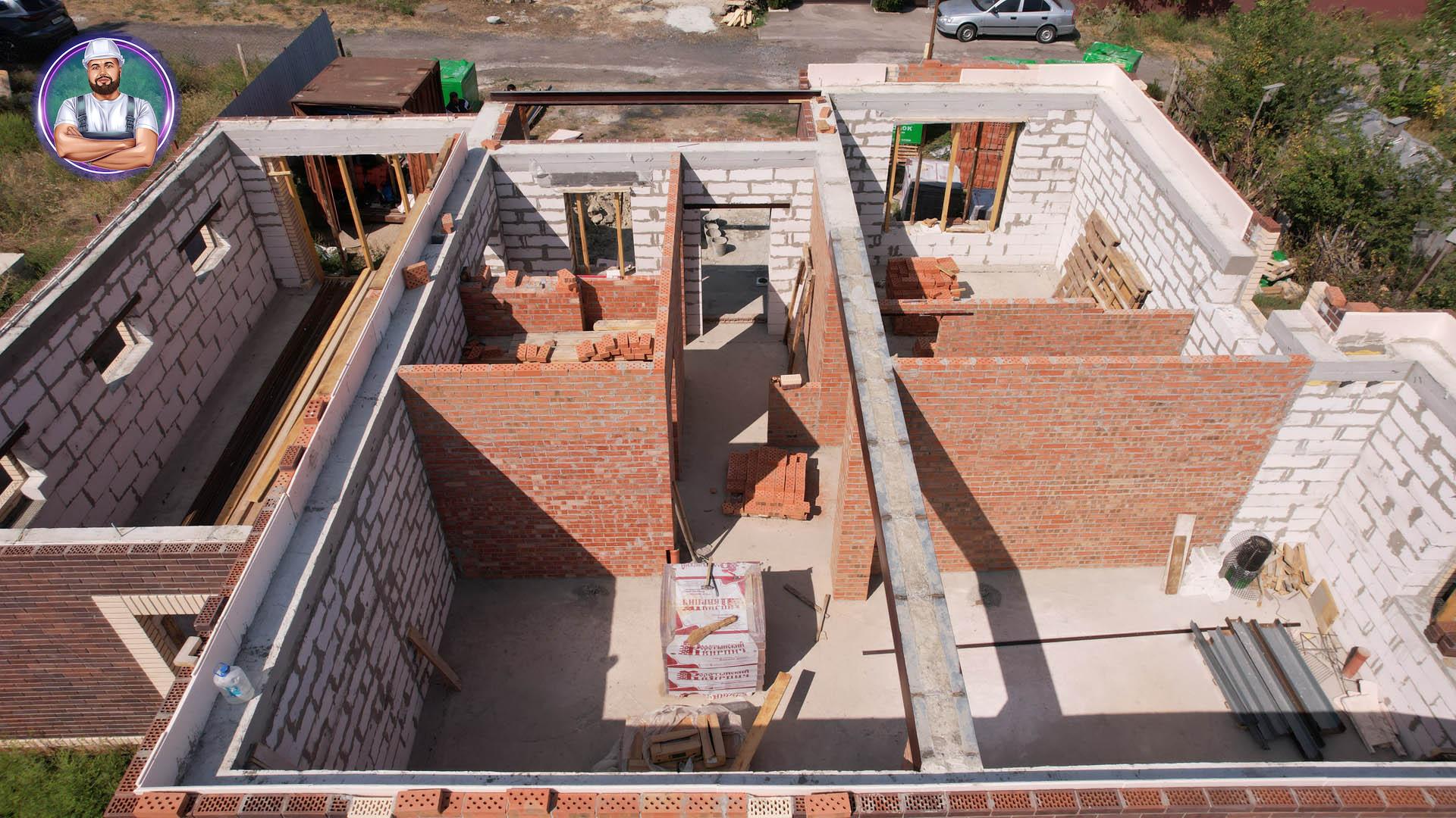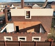 Стены: несущие конструкции возведены из газобетонного блока толщиной 400 мм с утеплением экструдированным пенополистиролом 50 мм и облицовкой декоративным кирпичом. Внутренние несущие стены выполнены из керамического кирпича толщиной 250–510 мм.
