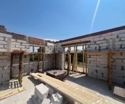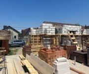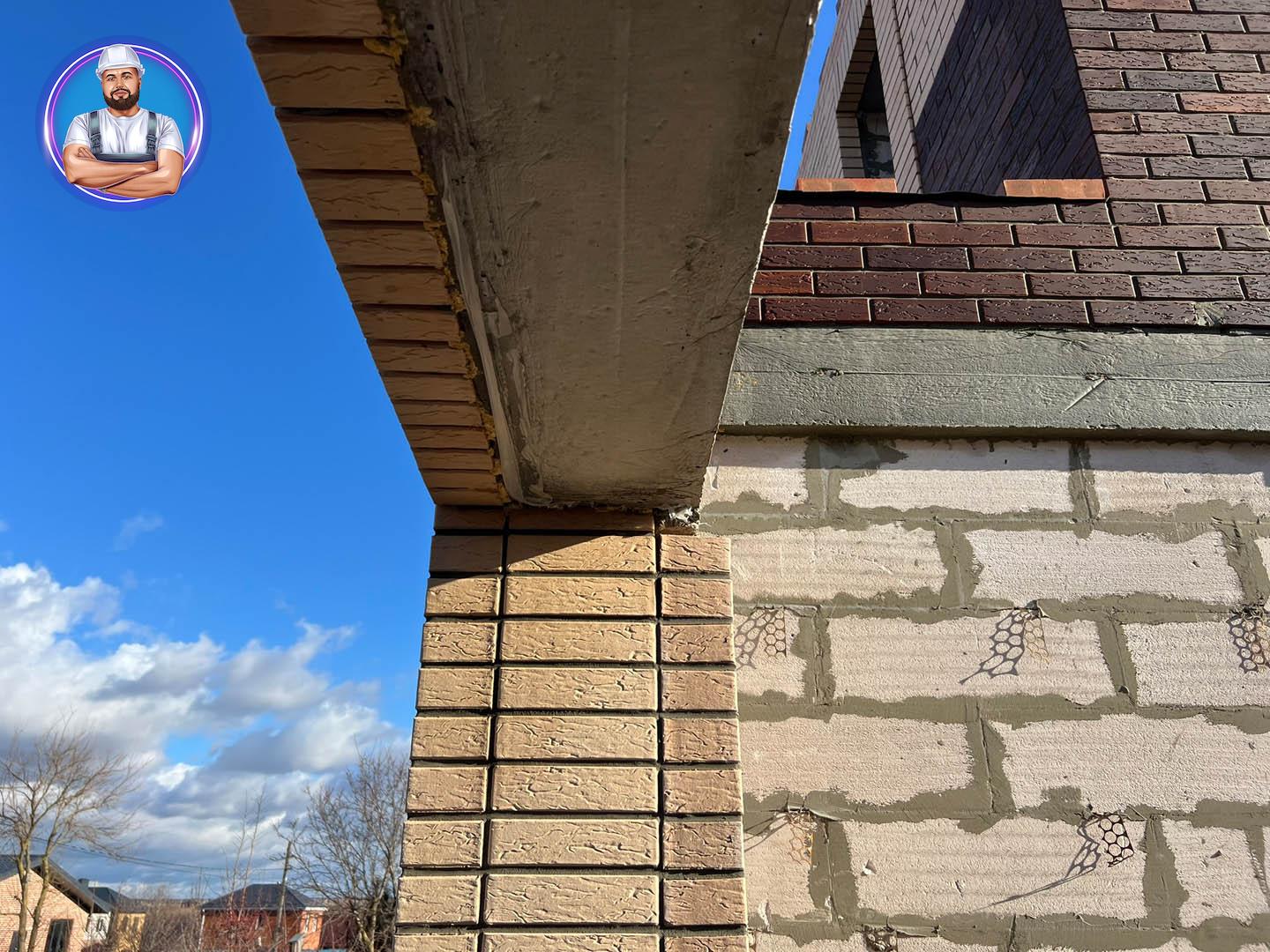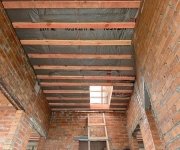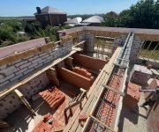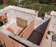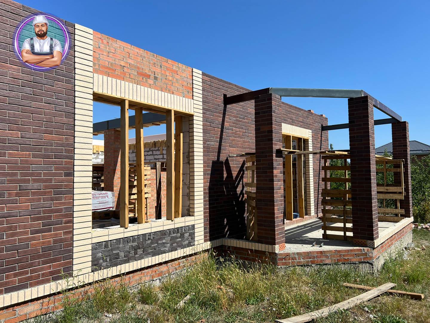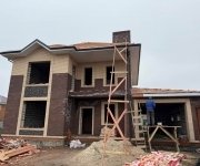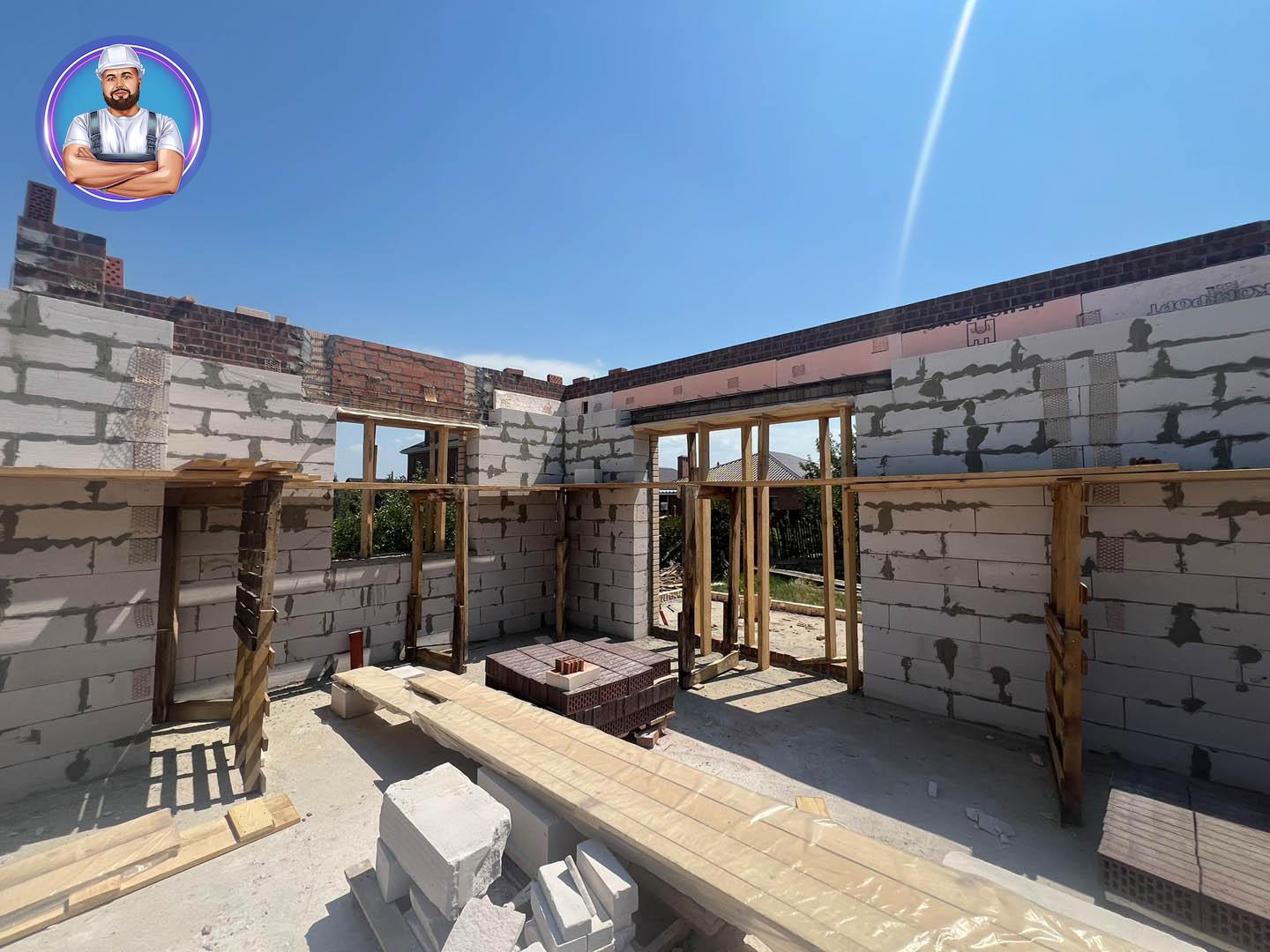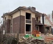 Стены: несущие конструкции возведены из газобетонного блока толщиной 400 мм с утеплением экструдированным пенополистиролом 50 мм и облицовкой декоративным кирпичом. Внутренние несущие стены выполнены из керамического кирпича толщиной 250–510 мм.