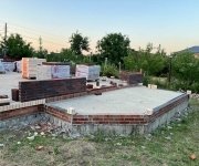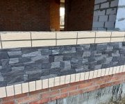 Фундамент выполнен в виде ленточного ж/б основания с глубиной заложения на уровень промерзания (около 1,6 м). В цокольной части использован полнотелый кирпич с дополнительной гидроизоляцией.