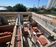 Перекрытия: ж/б монолитные плиты и сборные ПК, в том числе монолитные участки и балки. Лестница на второй этаж также монолитная.