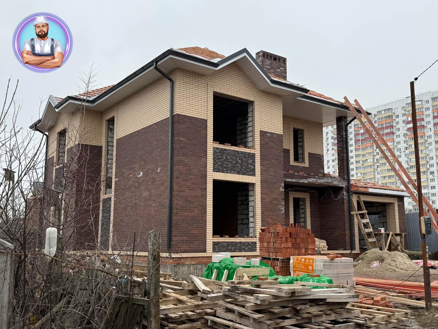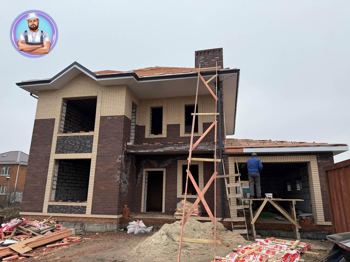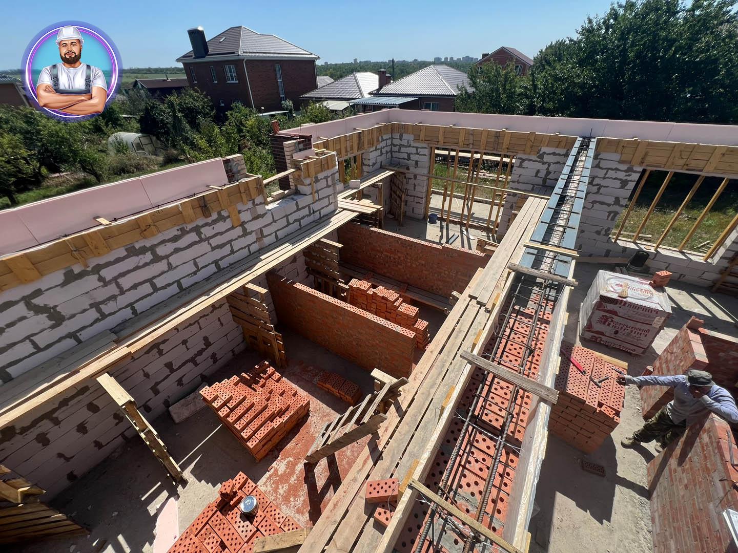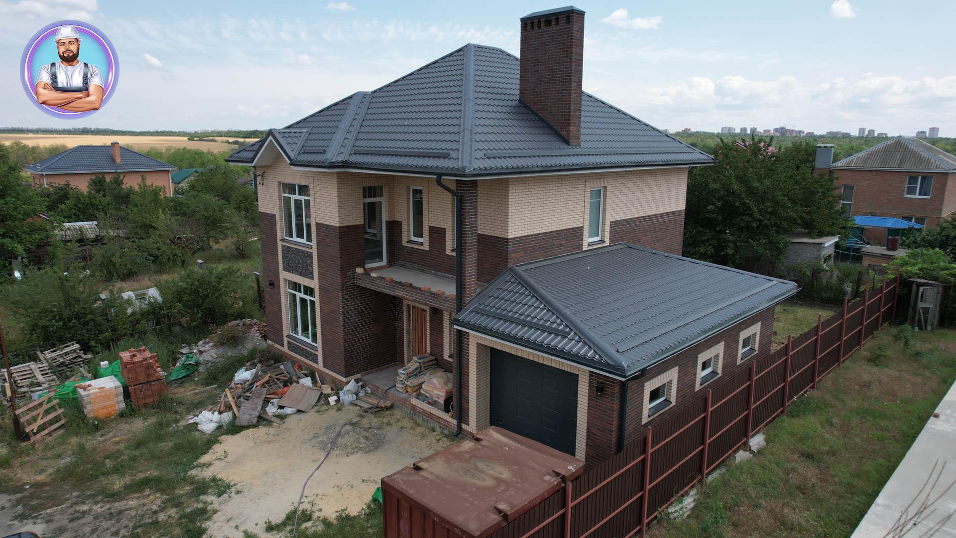 Дом получился современным, надежным и технологичным, а фотоотчёт ниже показывает весь процесс строительства — от котлована и фундамента до отделки фасада и монтажа кровли.