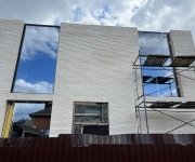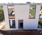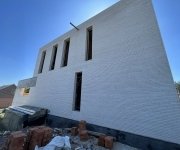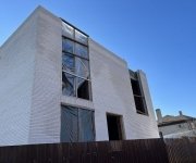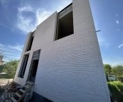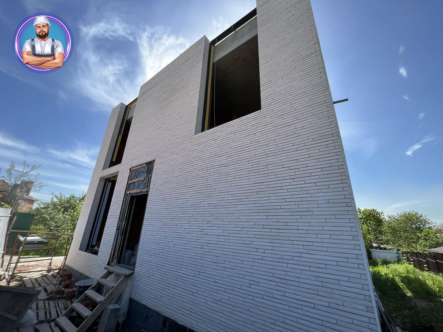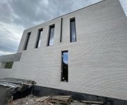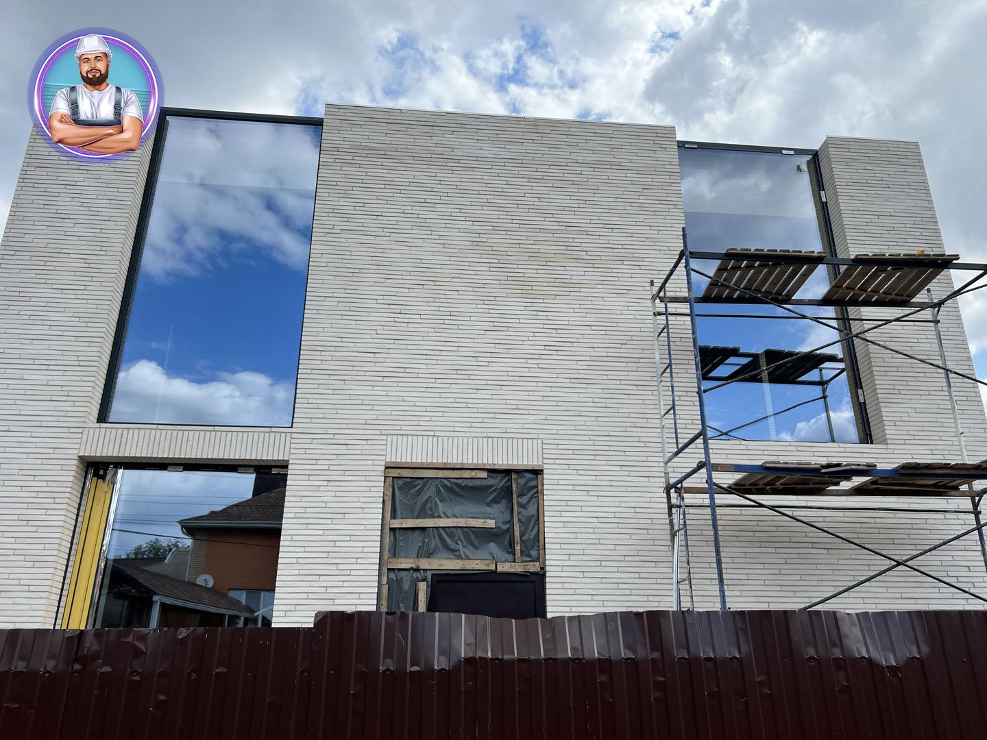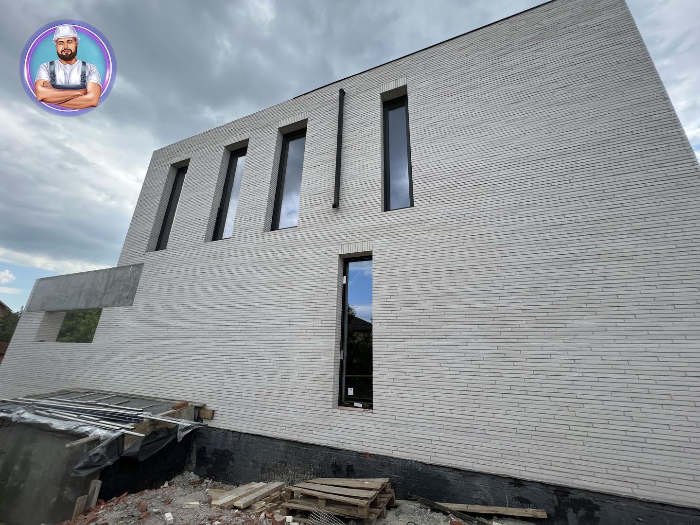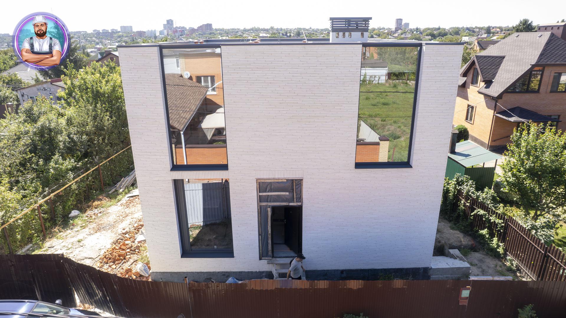 Общая площадь - 188 м2Современный дом в стиле минимализм, где в экстерьере гармонично сочетаются три материала — ригельный кирпич, бетон и графитовый металл. Особое внимание привлекают большие окна в пол и интересное архитектурное решение — окно, которое «уходит» в крышу.