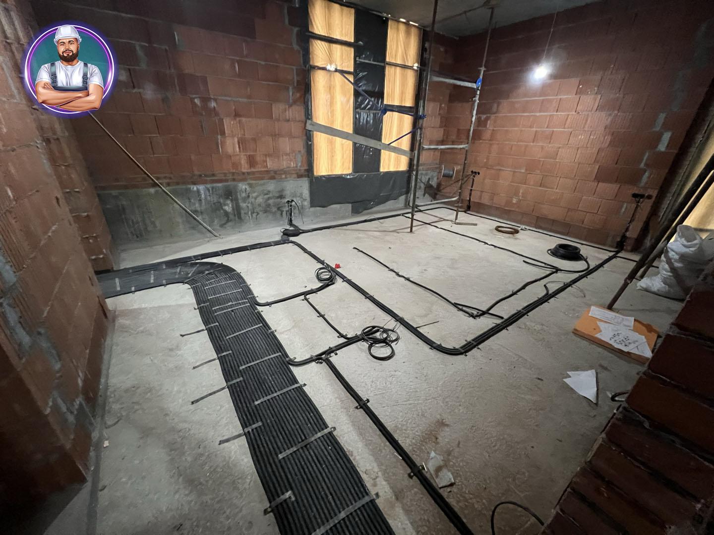 электрика проложена по полу и кровле,