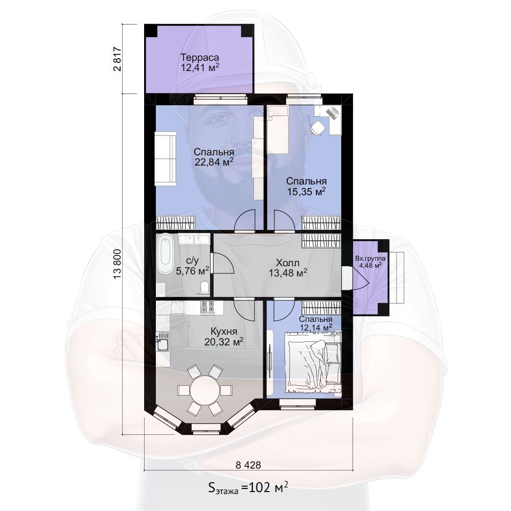 | Общая площадь | 102 м2 |