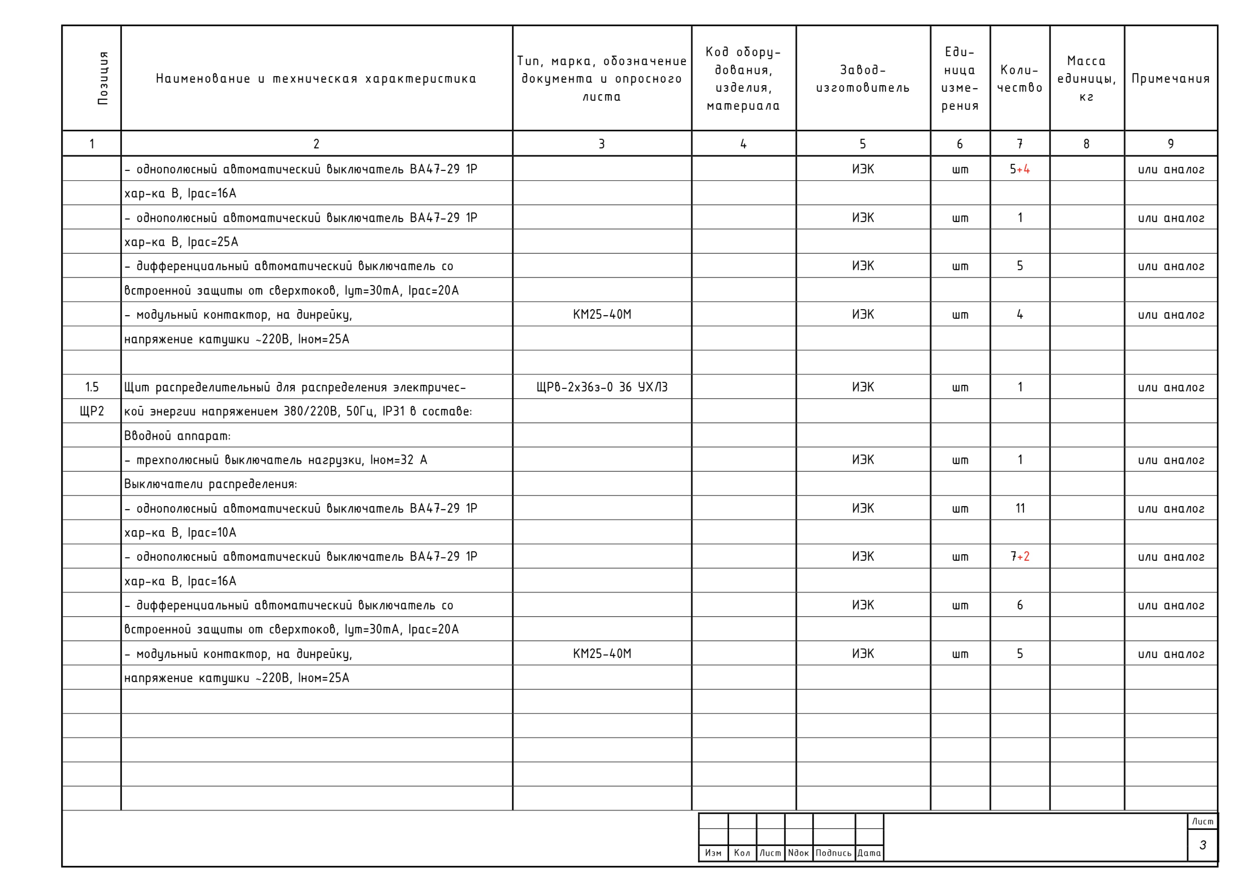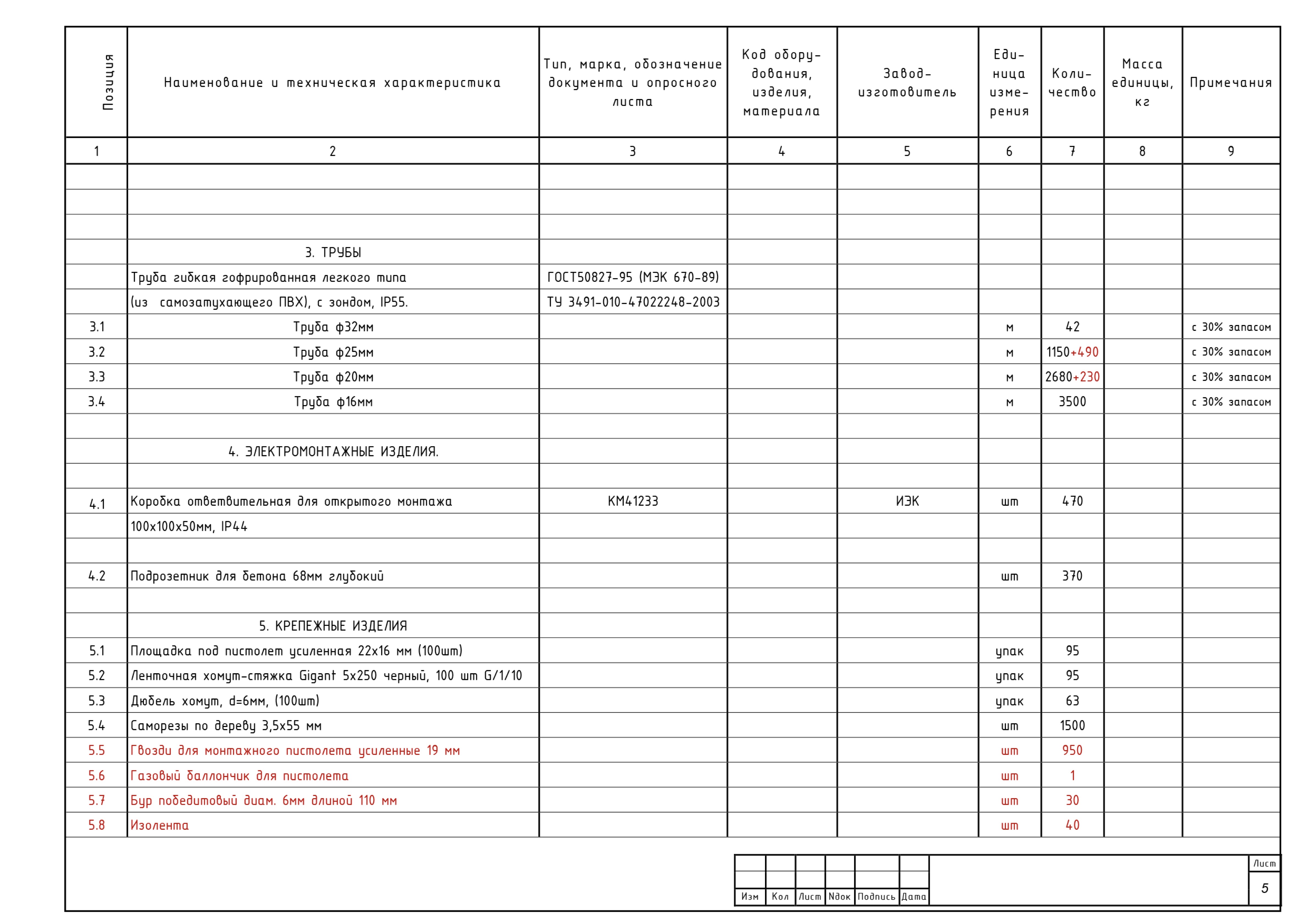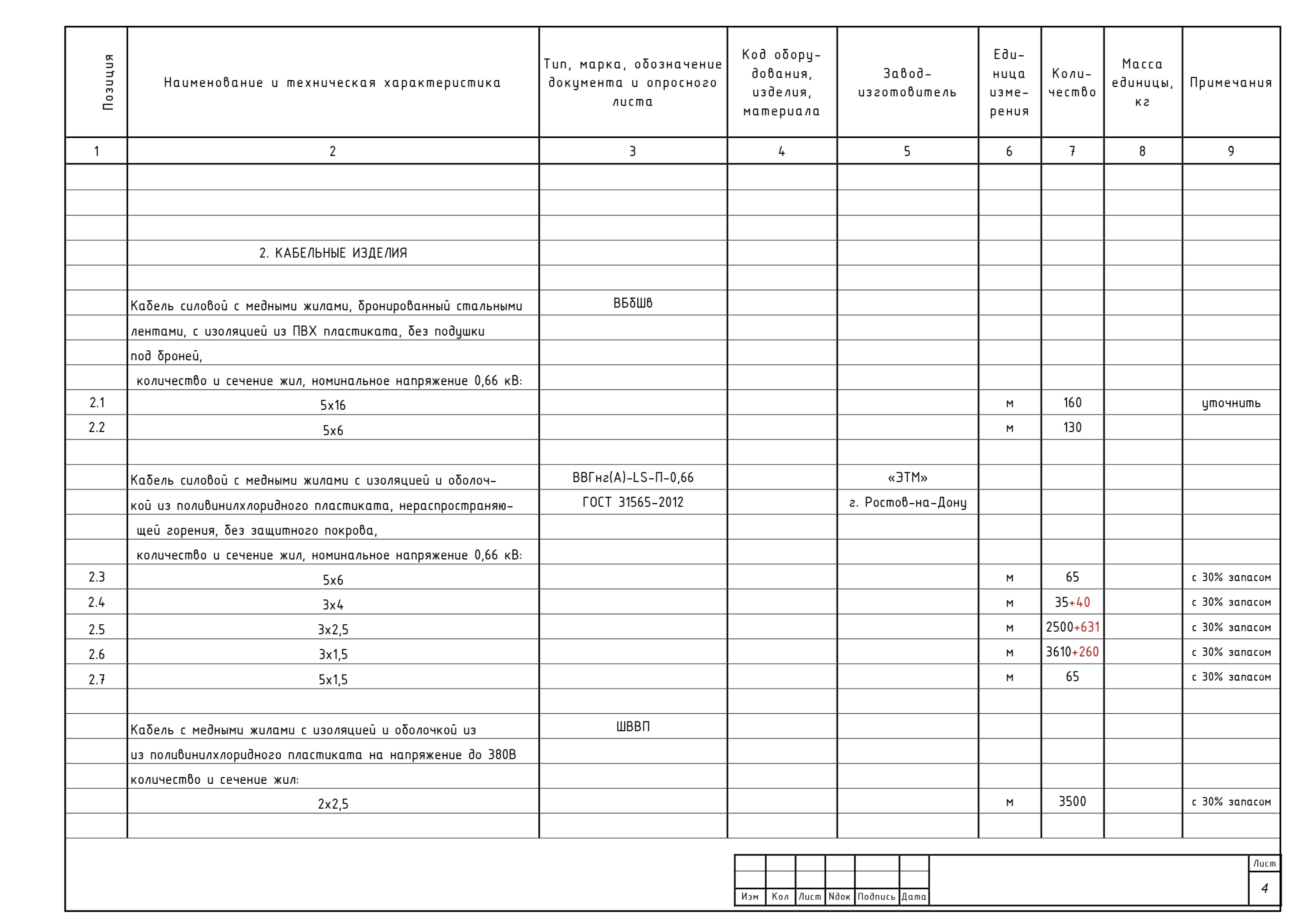 • Ведомость перемычек